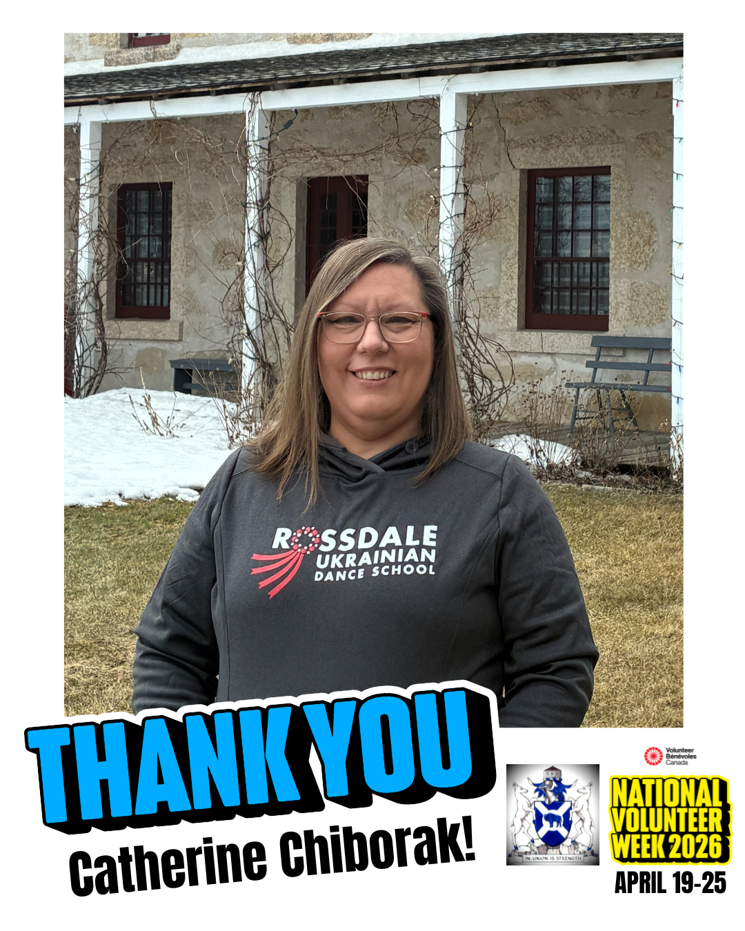 Outside of her volunteer duties at the Heritage Centre, she has been actively involved in the Ukrainian dance community both in her own training and through her daughter. Dancing with Rossdale for 5 years as a child, Catherine, growing up deeply tied to her Ukrainian roots, wanted to introduce her daughter to Ukrainian dance upon hearing Rossdale was still an active group within her community. Her daughter has embraced it wholeheartedly, and now they both travel for competitions, are fundraising for the upcoming 50th anniversary, and may be headed for a European festival in the near future. As she feels the immense support brought by the community for Rossdale, she insists that they should have an adult dance group!